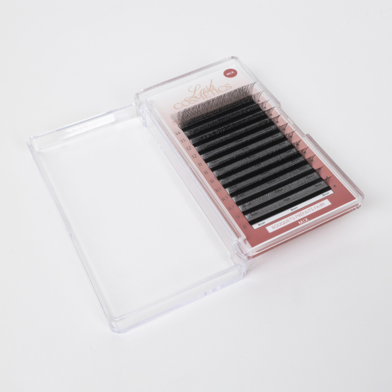 Les Bouquets Préfaits Fairy – Taille Unique de Lashcosmetics sont des extensions de cils déjà assemblées en éventail, prêtes à être posées directement sur le cil naturel pour réduire le temps de pose. Elles permettent de créer des poses adaptées aux besoins précis de chaque cliente, en choisissant la longueur, la courbure et la densité idéales.