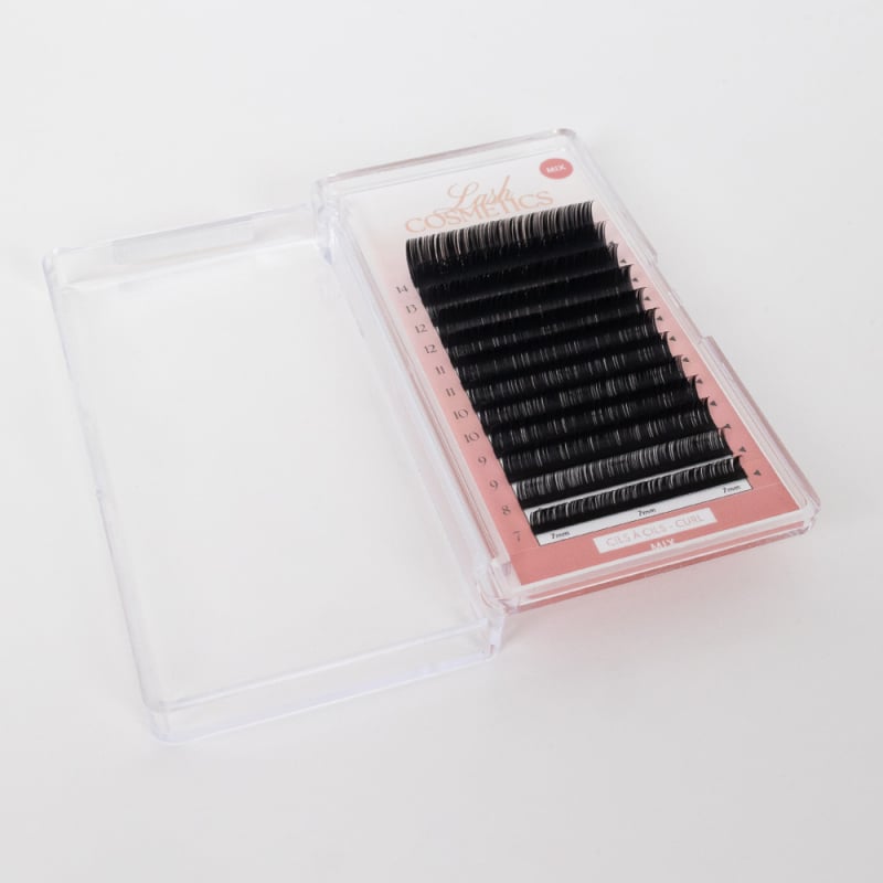 Les extensions cils à cils Curl de la marque Lashcosmetics sont parfaits pour des poses précises et rapides en technique cil à cil. Leur texture en soie synthétique apporte souplesse et douceur, offrant un confort maximal pour la cliente et une application fluide pour la technicienne.