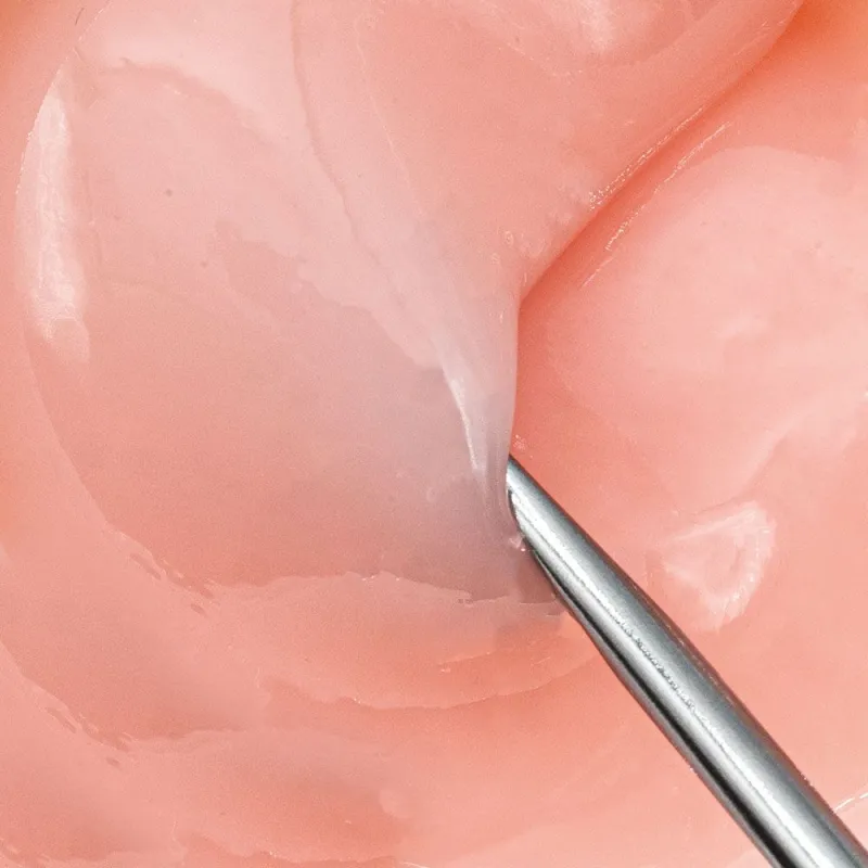 La solidité du gel Construction Fibres Babyboomer est due à sa formule enrichie en fibres de verre, qui garantit une structure durable et solide. Sa texture assez fluide et auto-nivelante est compatible avec la technique sans limage, permettant de travailler facilement avec la gravité (doigt retourné).