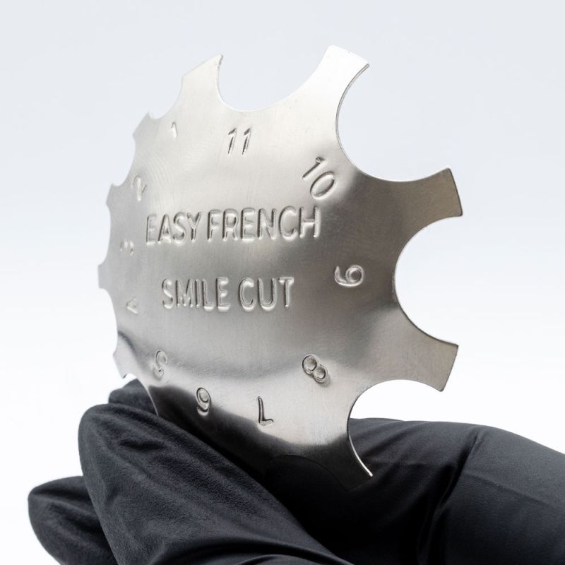 Le Easy French Smile Cut est conçu pour définir avec précision le sourire d’une french reverse. Il permet d’obtenir un tracé net et homogène en coupant la résine acrylique au moment idéal, avant sa polymérisation complète.