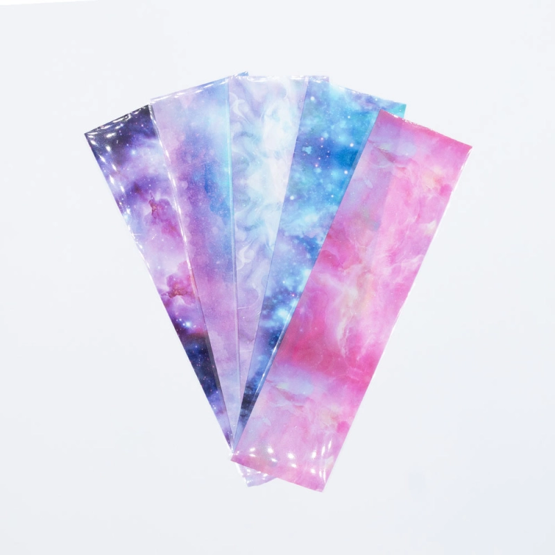 Les Foils 38 – Skys sont parfaits pour réaliser des décors d’ongles aux effets célestes et mystérieux. Leurs motifs inspirés de la galaxie, des étoiles et des nuages apportent une touche artistique et tendance à vos créations.