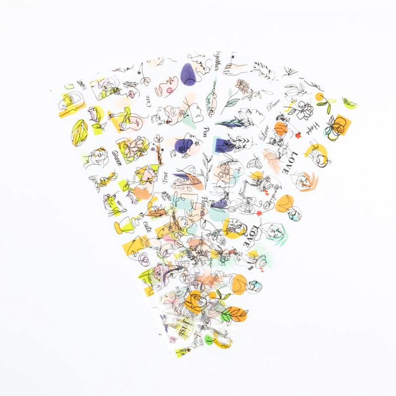 Les Foils 50 – Modern Art sont idéaux pour des décors d’ongles au style moderne et artistique. Les motifs de visages abstraits, associés à des fleurs épurées, créent un rendu original et tendance pour des créations graphiques et minimalistes.