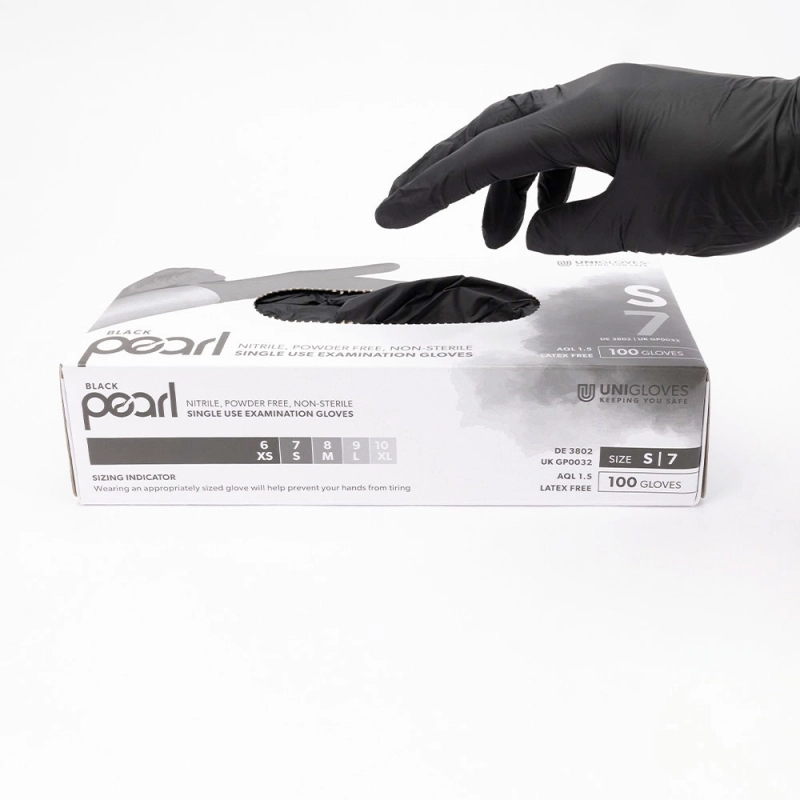 Gants Premium Nitrile Black Pearl – 100 pcs – UNIGLOVES Taille – Taille M