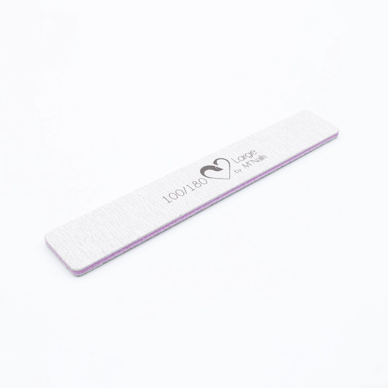 Cette lime large est idéale pour les techniciennes ongulaires qui recherchent une surface de limage plus grande pour un travail rapide et précis. Le grain 100 permet une mise en forme efficace des faux-ongles en gel, résine ou acrygel. Le grain 180 affine et lisse la structure pour une finition nette et homogène.
