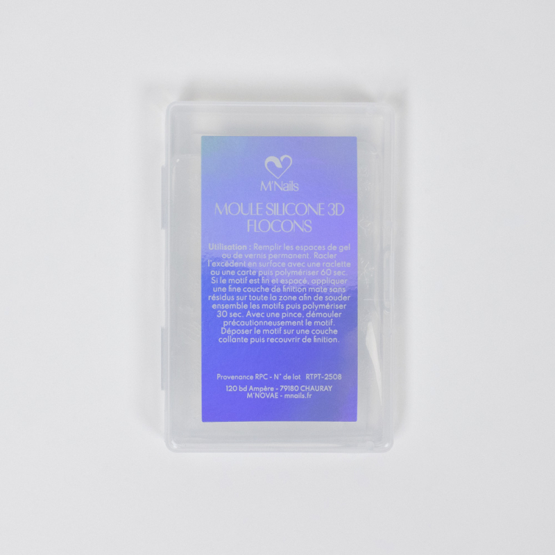 Le Moule silicone 3D Flocons est conçu pour créer facilement des décorations hivernales originales. Grâce à sa gravure précise, il permet de réaliser des motifs en relief détaillés ou de fabriquer de fins stickers à poser sur l’ongle.