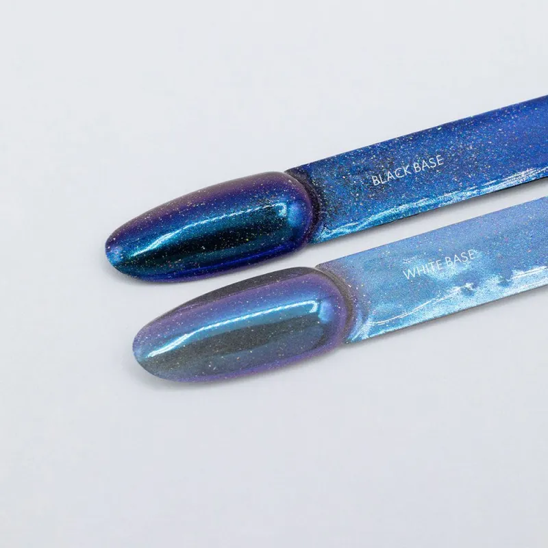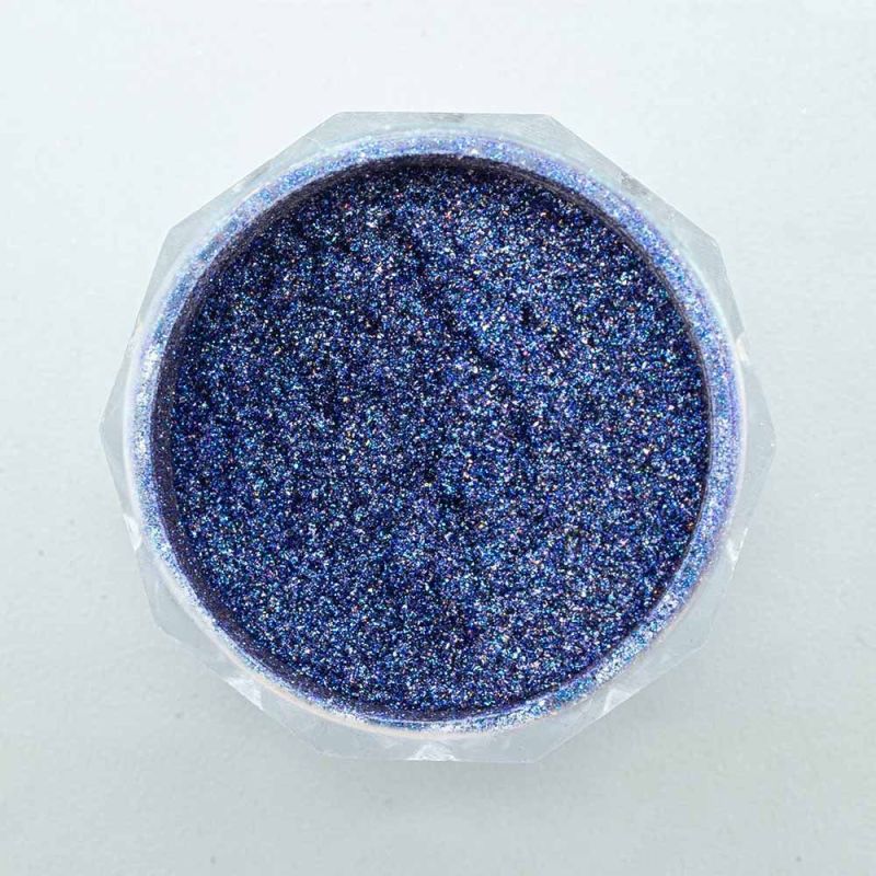 Le Pigment – Chrome Galaxie Blue est idéal pour des nail art tendances. Ses paillettes réflectives inspirées de la galaxie créent des reflets marqués qui varient selon la lumière. L’application sur une base foncée renforce la profondeur de sa teinte bleu intense et met en valeur ses nuances brillantes.