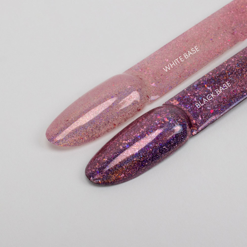 Le Pigment – Glitter Goddess est conçu pour illuminer vos nail art avec ses flakes aux reflets multiples qui captent la lumière sous différents angles. Son effet scintillant est particulièrement intense sur une base foncée, où les nuances roses et l’effet chrome laser se révèlent davantage.