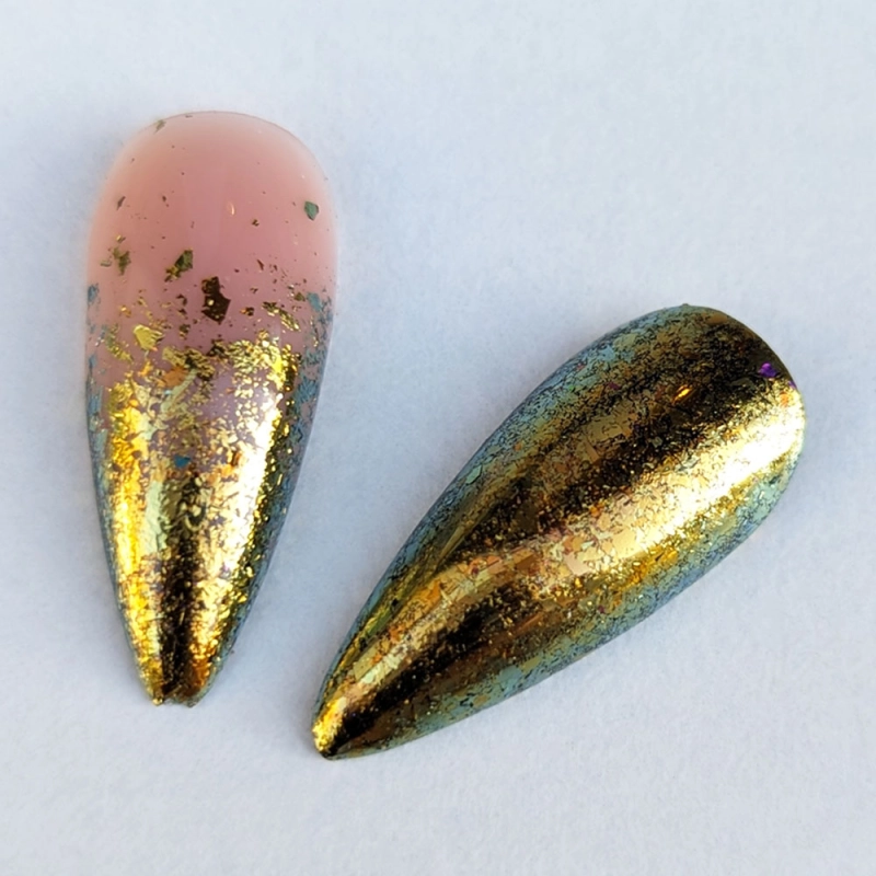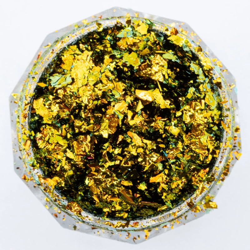 Le Pigment – Intense Christmas est conçu pour illuminer vos nail art de fêtes avec ses flakes dorés qui captent la lumière et créent des reflets intenses. Son effet miroir est idéal pour des effets pleins éclatants ou pour des décors précis qui ajoutent du relief et du contraste à vos réalisations.