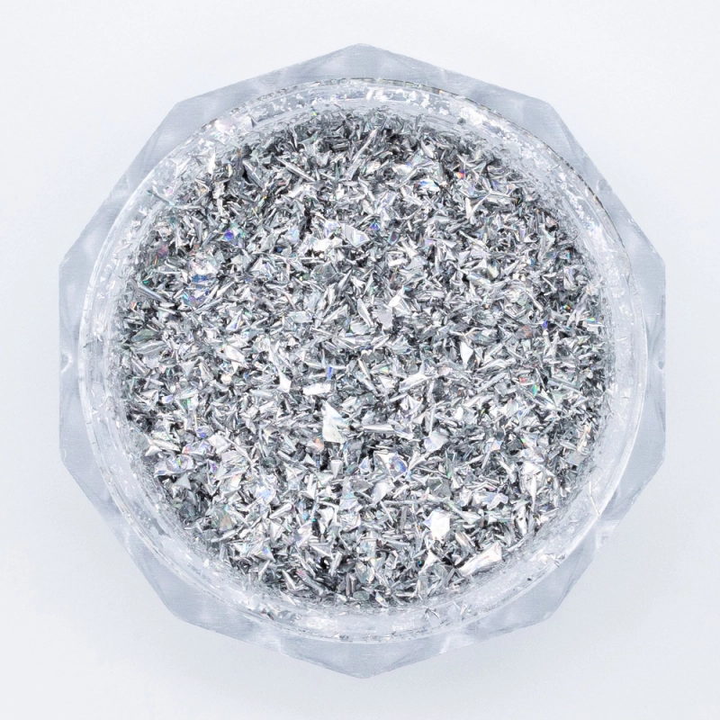 Le Pigment – Interstellar est idéal pour des manucures scintillantes. Ses flakes argentés créent des reflets holographiques marqués qui varient en fonction de la lumière.