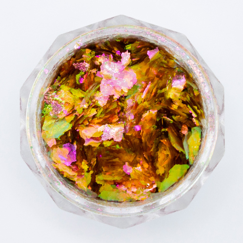Le Pigment – Pink Fire Flakes révèle des reflets multiples qui varient en fonction de la lumière et de l’angle de vue. Les flakes ajoutent de la brillance et permettent de créer des effets pleins ou des touches lumineuses sur des designs détaillés.