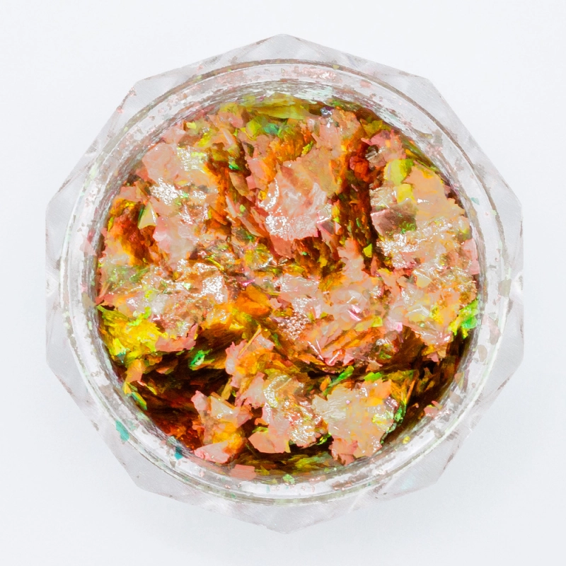 Le Pigment – Red Fire Flakes dévoile des reflets multiples qui évoluent selon la lumière et la couleur de base appliquée. Ses flakes rouges chromés ajoutent de l’éclat et du relief aux nail art.