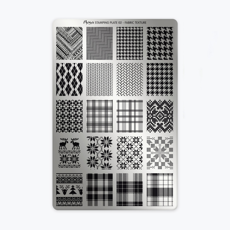 La Plaque 02 – Fabric Texture est idéale pour ajouter des motifs géométriques et des textures inspirées des tissus à vos poses d’ongles en gel ou en vernis semi permanent.