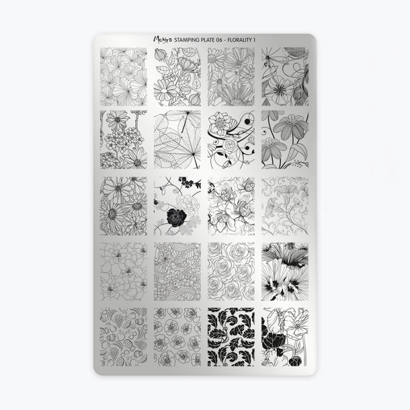 La Plaque 06 – Florality 1 est conçue pour ajouter une touche florale et délicate à vos poses d’ongles en gel ou en vernis semi permanent. Ses motifs détaillés sont parfaits pour réaliser des manucures originales et créatives.