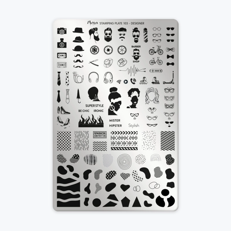 La Plaque 103 – Designer de Moyra est idéale pour réaliser des nail art graphiques, modernes et audacieux.