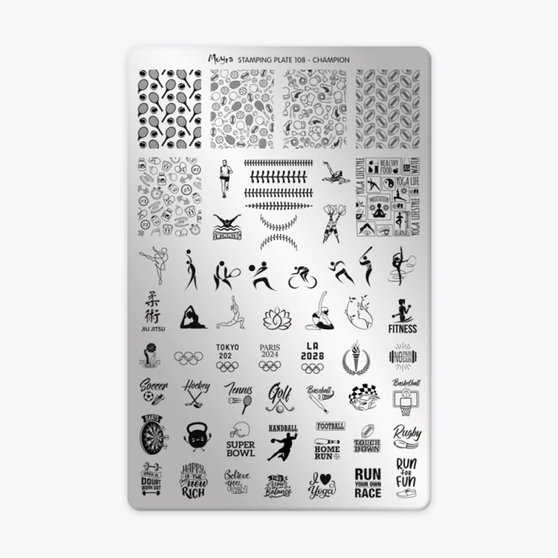 La Plaque 108 – Champion de Moyra est parfaite pour réaliser des nail art sportifs et inspirés des jeux olympiques.