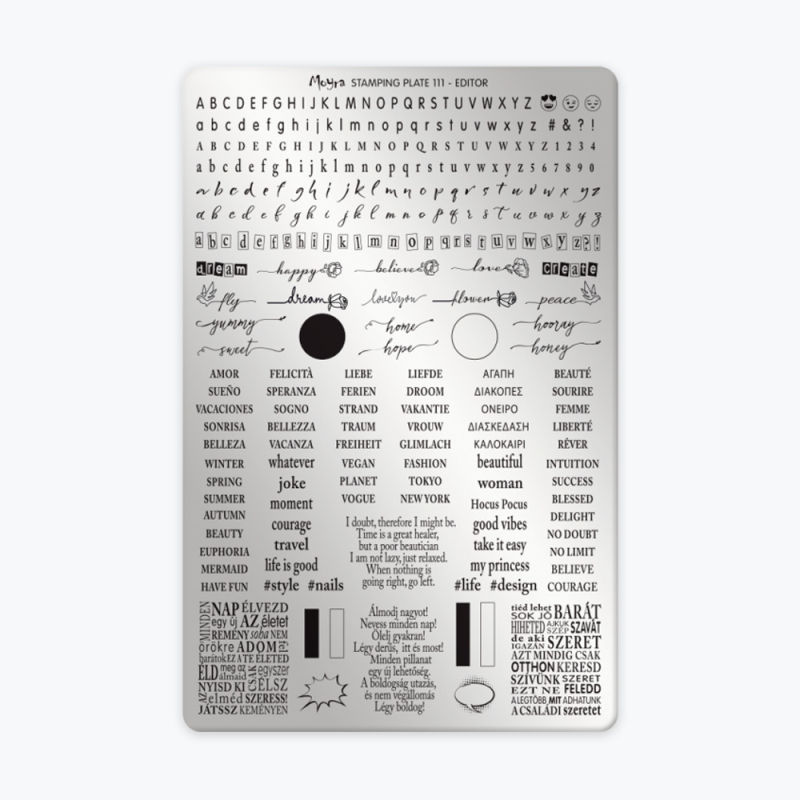 La Plaque 111 – Editor de Moyra est idéale pour créer des nail arts textuels, modernes et artistiques.