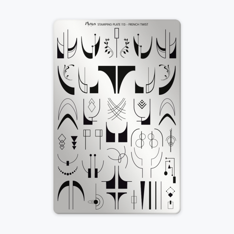 La Plaque 113 – French Twist de Moyra est idéale pour réaliser des french manucures revisitées et modernes.