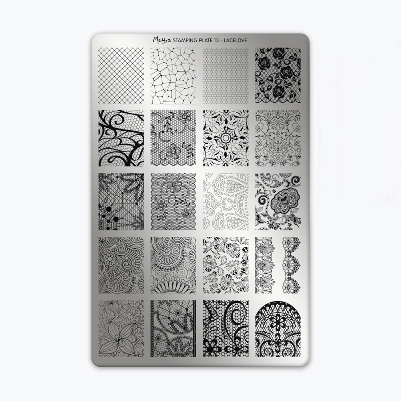 La Plaque 15 – Lacelove de Moyra est idéale pour des nail arts tendances et détaillés. Ses motifs inspirés des mandalas et de la dentelle ajoutent une touche de raffinement à vos poses d’ongles en gel ou en vernis semi permanent.