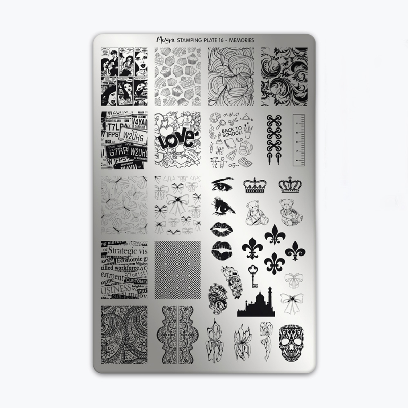 La Plaque 16 – Memories de Moyra est idéale pour réaliser des manucures personnalisées avec des motifs élégants et estivaux.