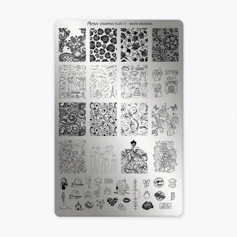 La Plaque 17 – White Wedding de Moyra est spécialement conçue pour des manucures élégantes et festives.
