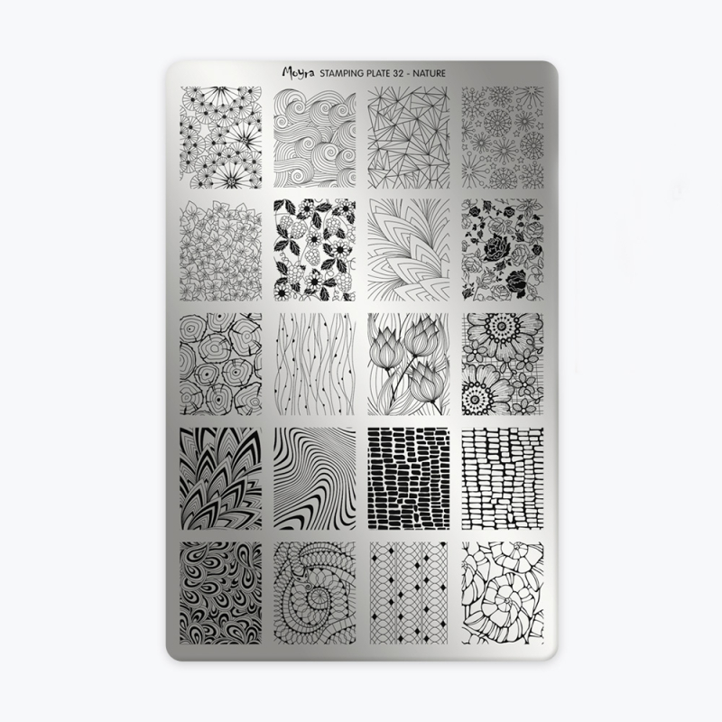 La Plaque 32 – Nature de Moyra est idéale pour réaliser des nail art inspirés de la nature et apporter une touche florale à vos créations.
