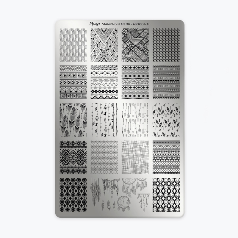 La Plaque 38 – Aboriginal de Moyra est idéale pour réaliser des nail art ethniques et originaux inspirés des motifs traditionnels aborigènes.