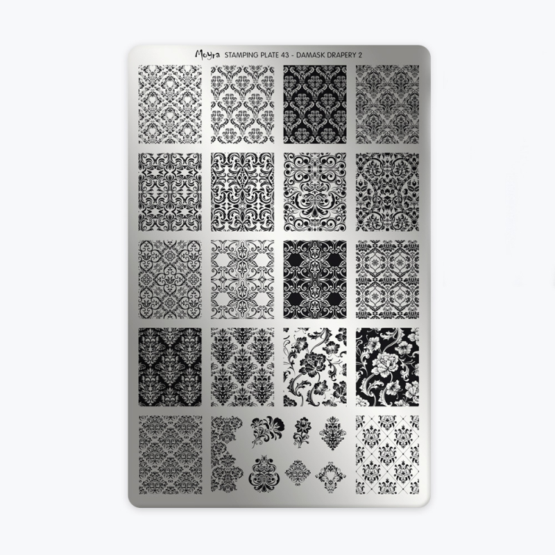 La Plaque 43 – Damask Drapery 2 de Moyra est idéale pour créer des nail art élégants inspirés des décorations textiles.