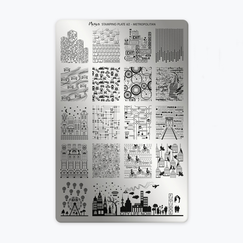 La Plaque 62 – Metropolitan de Moyra est parfaite pour réaliser des nail art urbains inspirés de l’architecture et des grandes métropoles.