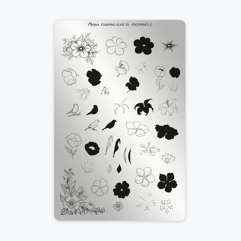 La Plaque 70 – Footprints 2 de Moyra est idéale pour réaliser des nail art élégants et pleins de douceur.