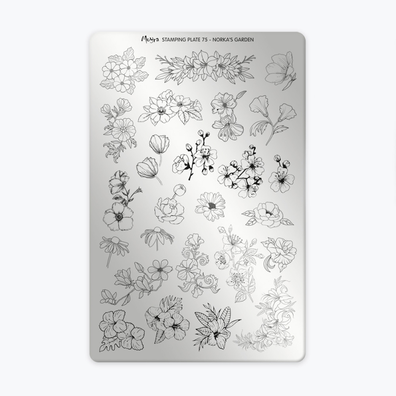 La Plaque 75 – Norka’s Garden de Moyra est parfaite pour réaliser des nail art floraux et apporter une touche printanière à vos manucures.