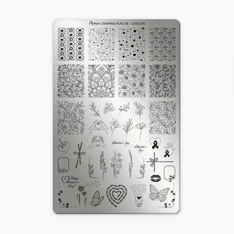 La Plaque 88 – LoveLove de Moyra est parfaite pour réaliser des nail art romantiques, naturels et empreints de douceur.