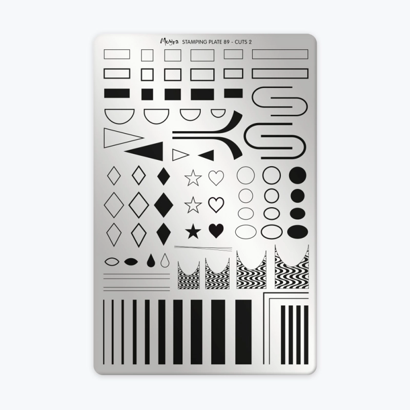 La Plaque 89 – Cuts 2 de Moyra est idéale pour créer des nail art graphiques et géométriques.