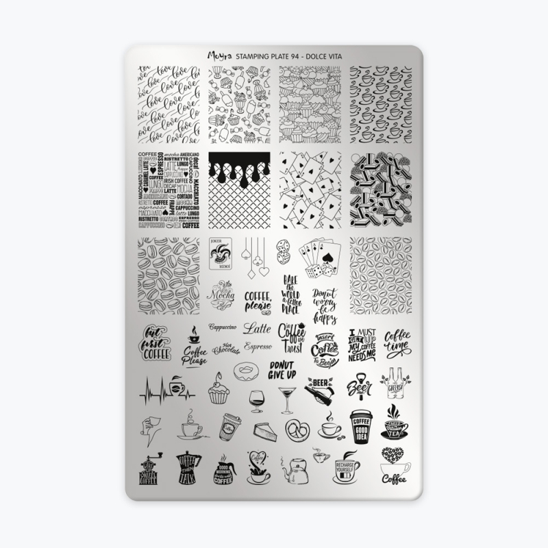 La Plaque 94 – Dolce Vita de Moyra est parfaite pour des nail art créatifs et amusants.