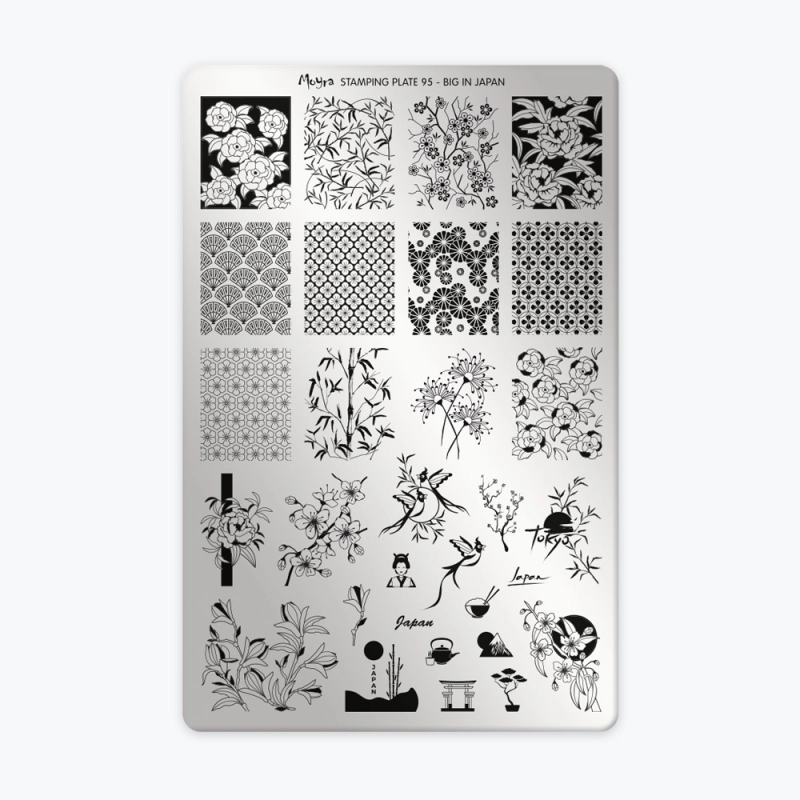 La Plaque 95 – Big in Japan de Moyra est parfaite pour réaliser des nail art inspirés du Japon et des ambiances florales raffinées.