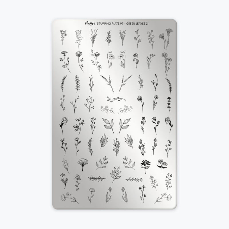La Plaque 97 – Green Leaves 2 de Moyra est idéale pour créer des nail art floraux et épurés. Avec ses fleurs fines à l’unité, ses feuilles détaillées et ses décors végétaux, elle permet de composer des manucures délicates et sophistiquées.