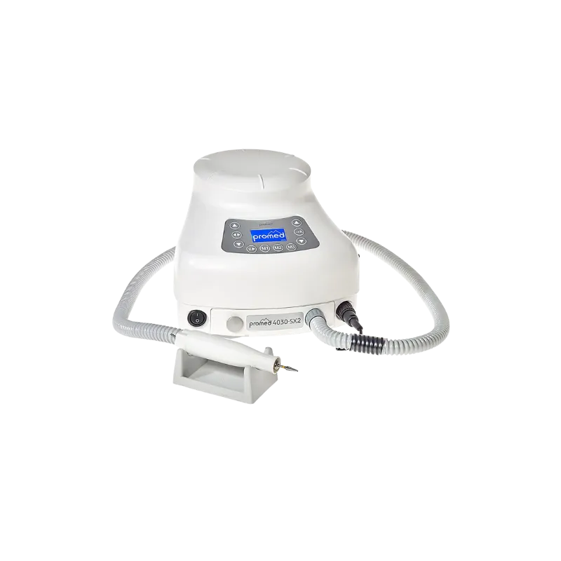 La Promed 4030SX2 Aspirante est l’outil idéal pour les techniciennes souhaitant réduire les risques liés aux particules fines grâce à son système d’aspiration intégré. Équipée d’une turbine de 350 W réglable et d’un grand sac de filtre (14 x 18 cm), elle assure une aspiration efficace tout en maintenant une faible consommation d’énergie.