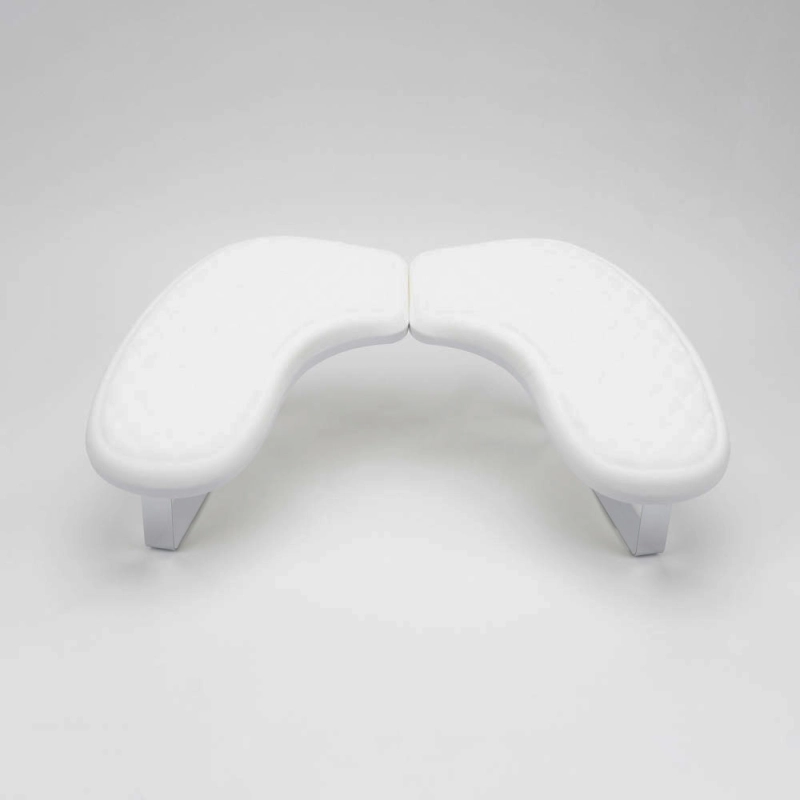 Le revêtement matelassé blanc apporte un vrai confort d’appui et se nettoie rapidement entre deux clientes, garantissant hygiène et praticité.