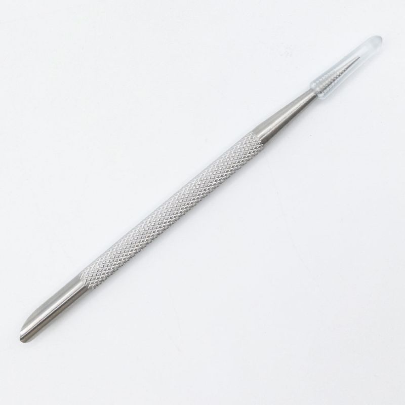 Double embout : Pointe fine pour gratter avec précision les cuticules et Embout biseauté pour repousser les peaux et fixer les mini limes adhésives