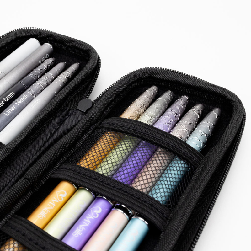 La Trousse à Pinceaux – Noir est conçue pour protéger vos pinceaux tout en vous offrant une organisation optimale. Le filet souple empêche les pinceaux fins de bouger ou de se tordre, tandis que l’élastique solide maintient les outils plus épais en place.
